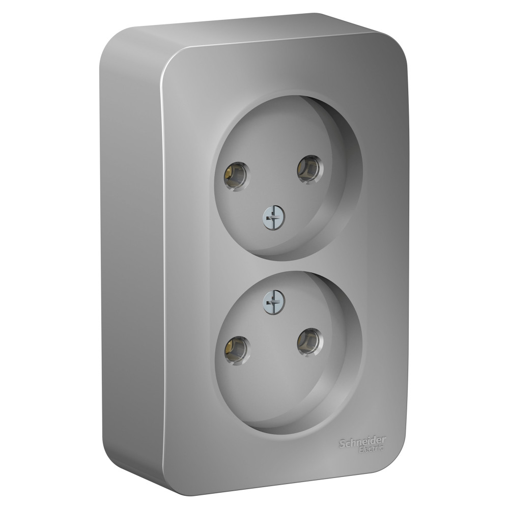 Розетка Schneider Electric BLANCA (алюминий, открытой установки) двухместная, без шторок и заземления предназначена для сетей до 250В, на ток до 16А. Двухместная розетка позволяет подключить два устройства в одном месте. Она изготовлена из ABS-пластика, проста в установке и удобна в применении