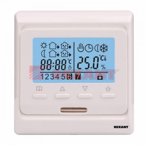 Компактный и стильный дизайн Терморегулятора REXANT R51XT делает его прекрасным дополнением интерьера любого помещения. Сочетание функциональности, удобства использования и эстетичного вида делает этот терморегулятор идеальным выбором для тех, кто ценит комфорт и экономию энергии.