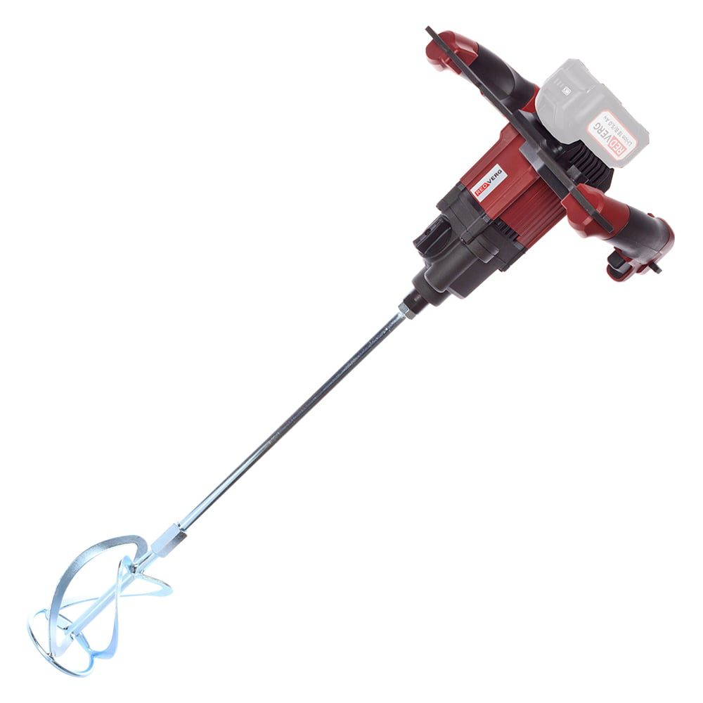 Миксер аккумуляторный предназначен для перемешивания строительных и отделочных материалов, таких как раствор, штукатурка, краска, клеи и другие схожие вещества. Низкие обороты и высокий крутящий момент позволяют работать с самыми плотными смесями. Внимание! Аккумулятор и зарядное устройство в комплект не входят. Особенности: Бесщёточный электродвигатель для долгой службы Прорезиненные рукоятки для удобства работы Популярная и распространённая система крепления насадки миксера- резьбовое соединение М14 2х-скоростной редуктор Широкий выключатель для удобства включения/выключения миксера даже в перчатках и рукавицах