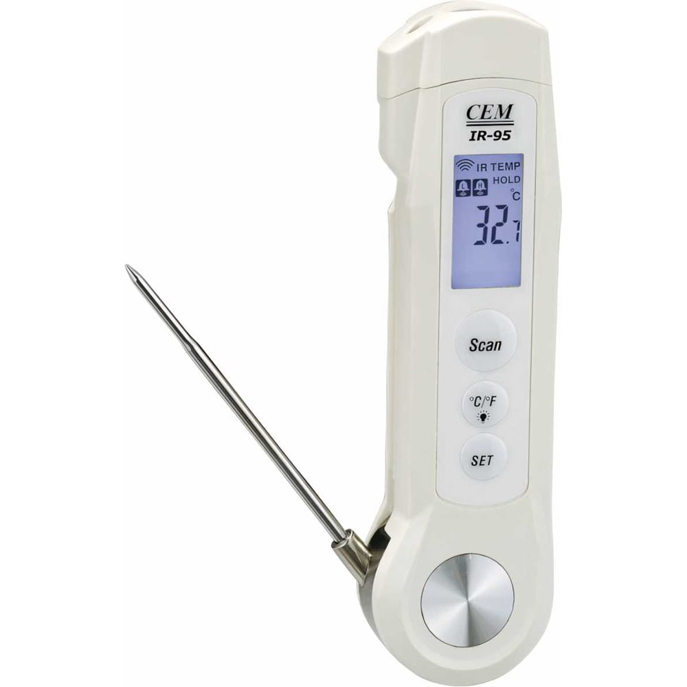 Инфракрасный термометр СЕМ IR-95 482407 служит для измерения температуры поверхностей и внутренней температуры объектов. Наличие подсветки облегчает работу в слабоосвещенных помещениях. В случае превышения максимального и минимального порога срабатывает звуковая сигнализация. Для экономии заряда элементов питания предусмотрена функция автоматического отключения прибора.