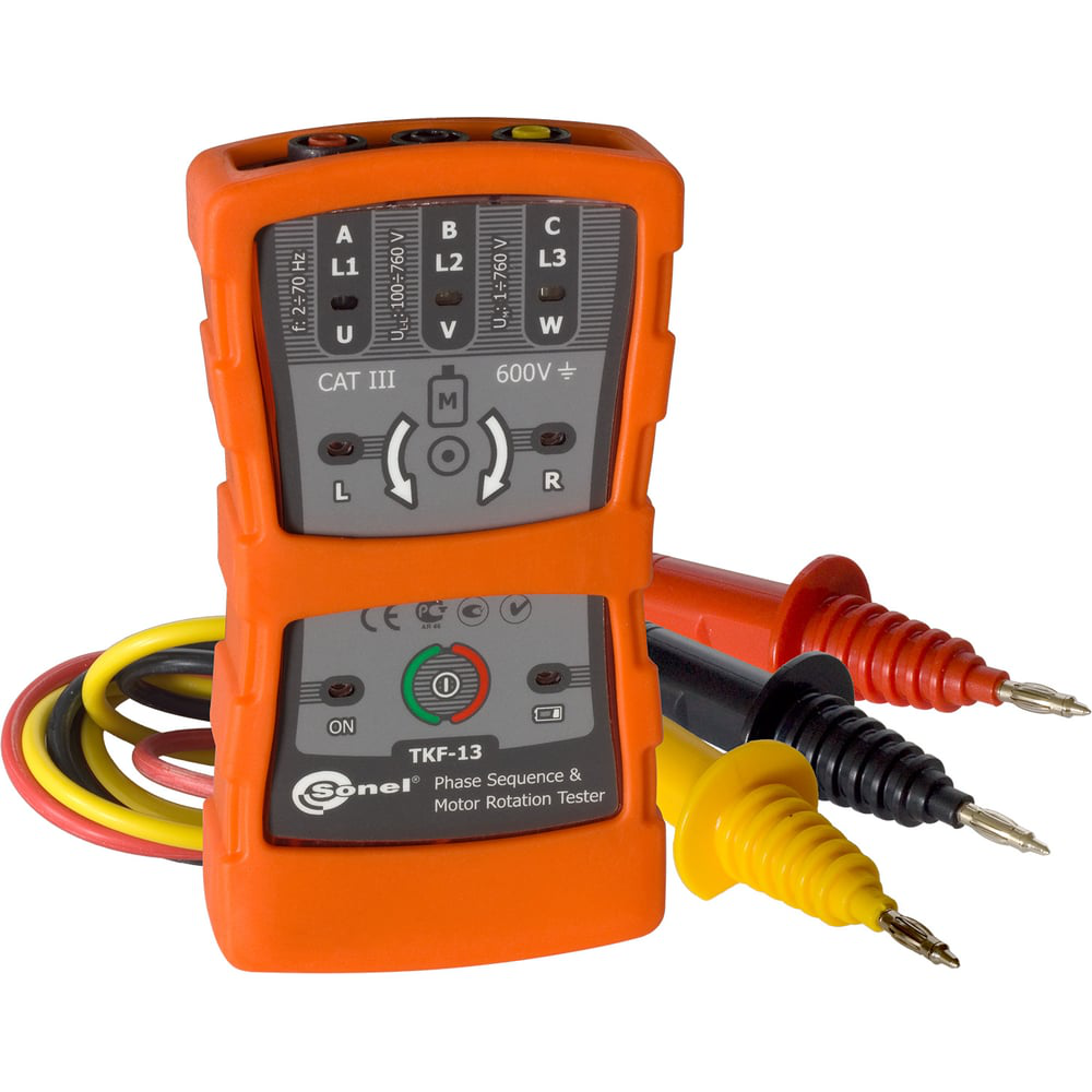 Указатель правильности чередования фаз и направления вращения электродвигателей SONEL WMRUTKF13 применяется для определения последовательности чередования фаз и наличия напряжения в трехфазных электроустановках, в диапазоне 100…760 В. С помощью прибора можно определить направление вращения электродвигателя при непосредственном подключении (обесточенное состояние), а также бесконтактно - при работе электродвигателя. Все результаты удобно отображаются благодаря высококонтрастным светодиодам. Корпус указателя является влаго- и ударозащищенным, это позволяет применять прибор в различных условиях окружающей среды.