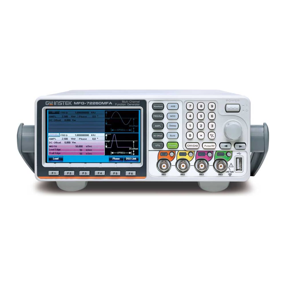 Генератор GW Instek MFG-72260MFA представляет собой генератор сигналов до 60 МГц и импульсов до 25 МГц. Формирует сигналы синусоидальной, прямоугольной, треугольной, пилообразной формы (+65 встроенных форм СПФ). Модель имеет встроенный частотомер - от 5 Гц до 150 МГц. Большой цветной графический дисплей облегчает считывание информации. Интерфейс USB позволяет передавать данные на ПК.