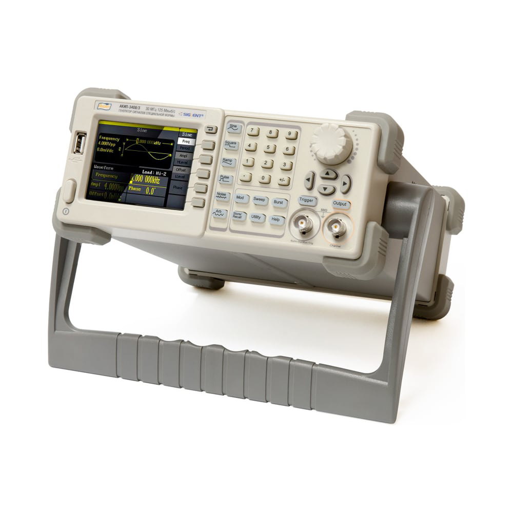 Генератор сигналов АКИП-3408/3 применяется для формирования сигналов стандартной и произвольной форм. Это измерительный прибор, принцип действия которого основан на технологии прямого цифрового синтеза. Генератор широко используется для экспериментальных исследований и образовательных приложений, в лабораторном тестировании, электронном моделировании, имитации сигналов окружающей среды, отладке и ремонте РЭА. Прибор имеет удобное меню и конфигурацию органов управления, большой цветной дисплей.