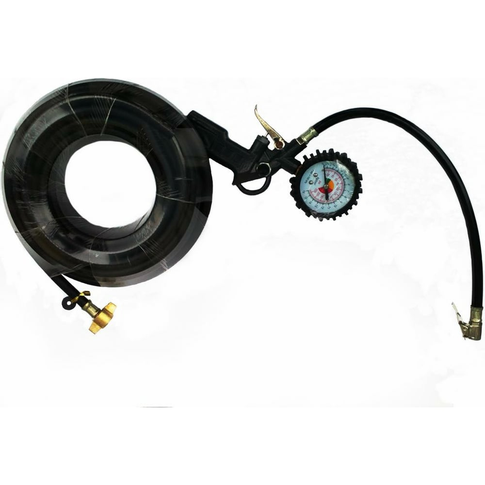 Шланг для подкачки изготовлен из высококачественного армированного кислородного шланга длиной 13м с рабочим давлением до 20атм.В комплектацию шланга входят: "барашек" (гайка) которая накручивается на выход ресивера вашего автомобиля, с противоположной стороны шланга находится пистолет с манометром до 16 атм и шлангом 0,3 м с наконечником "прищепка"Шланг с манометром и пистолетом DA-01343 предназначен для накачивания шин.Крючок для подвешивания позволяет экономить место при хранении.