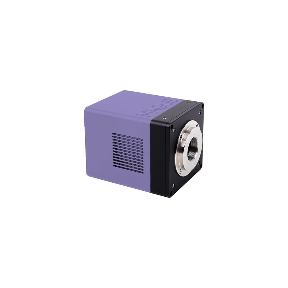 Цифровая камера MAGUS CLM70 разработана для работы в свете люминесценции и по методу темного поля. Камера оснащена сенсором 1,7 Мпикс и формирует реалистичное изображение в разрешении 1600x1100 пикс при работе на объективах 40х, 60х и 100х. Видеозапись ведется с частотой 94 кадра в секунду при максимальном разрешении. Видео плавные, с мягкими и незаметными глазу переходами между кадрами. Передвижение препарата отображается в реальном времени, без задержек. Камера обеспечивает удобную работу с подвижными объектами, подходит для проведения демонстраций в аудитории. Камера оснащена интерфейсом USB 3.0. Скорость передачи данных в 10 раз выше, чем у камер с интерфейсом USB 2.0. Высокоскоростная камера рекомендуется для профессиональной работы в лаборатории, исследований или обучения в вузах. Сенсор В камере установлен монохромный CMOS-сенсор SONY Exmor с обратной засветкой. Эта технология повышает светочувствительность и улучшает производительность камеры при слабой освещенности. Монохромный сенсор не дает классифицировать объект исследования по цвету, но обладает в 2–4 раза большей светочувствительностью, чем цветной. Изображение получается более ярким и контрастным, поэтому монохромная камера подходит для решения задач, связанных с низкой освещенностью. Сенсор большого размера – 1,1''. Физический размер сенсора влияет на качество получаемого изображения: чем он больше, тем чище изображение, больше глубина цвета, шире поле зрения. Пиксель размером 9x9 мкм обеспечивает светочувствительность 8100 при 1/30 с. Чтобы обеспечить максимальное поле зрения без искажений, рекомендуется адаптер с увеличением 1х. Элемент Пельтье Во время длительной работы сенсор камеры сильно нагревается. Из-за этого в изображении возникает тепловой шум, значительно снижающий качество изображения. Для устранения этого негативного эффекта камера оснащена двухступенчатым термоэлектрическим модулем (элементом Пельтье). Он устанавливает температуру на 42 °C ниже комнатной и создает оптимальные условия для длительной работы сенсора без нагрева, поэтому камера подходит для фотографирования на длинных выдержках: изображение ясное, без теплового шума. Затвор Камера оснащена глобальным затвором. Сигнал считывается со всех светочувствительных элементов матрицы одновременно. Быстродвижущиеся объекты видны четко и без ложных оптических эффектов. Изображение при слабой освещенности яркое и информативное, что особо важно для люминесценции. Программные возможности Камера использует программное обеспечение для вывода картинки на внешний экран, фотографирования, видеозаписи, редактирования изображения, определения линейных и угловых размеров объектов и их структур. Перед измерениями программное обеспечение необходимо откалибровать на каждом объективе с помощью калибровочного слайда. Установка Камера устанавливается на микроскоп в канал визуализации при помощи адаптера C-mount из комплекта поставки микроскопа.