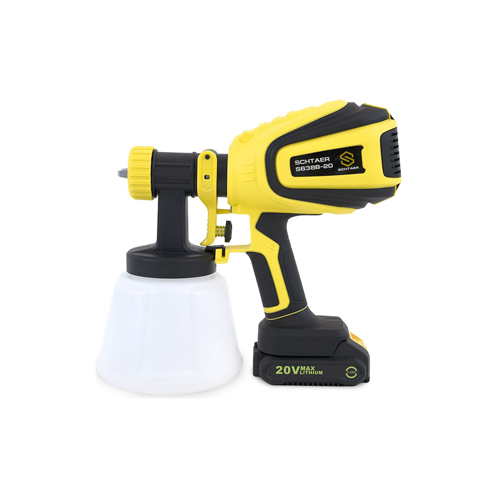 Аккумуляторный краскораспылитель со встроенным вентилятором SCHTAER S638B-20 - простой и эффективный аппарат для покраски мебели, заборов, дверей, окон, стен, потолков, а также для восстановления автомобильных покрытий и т.д.
