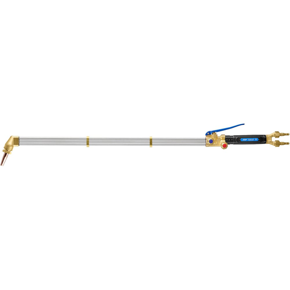 Универсальный резак внутрисоплового смешения газов предназначен для ручной кислородной резки листового и сортового металлопроката из низкоуглеродистых сталей толщиной до 300 мм. Резак обладает повышенной надежностью конструкции, которая достигается за счет штампованных латунных элементов резака. На резаке установлена ручка из высокотемпературного штампованного пластика, выдерживающая температуру до 200 °С, благодаря чему можно работать в тонких рукавицах. Резак может работать на пропане и ацетилене. Выбор газа зависит от установленных газосмесительных мундштуков. Мундштуки имеют три запорных пояска, которые предотвращают перетечку газов и обеспечивают смешение газов непосредственно в мундштуке, обеспечивая безопасное использование. Резак поставляется c разборным пропановым мундштуком №2PM. Давление газа на входе и расход зависит от установленного мундштука.