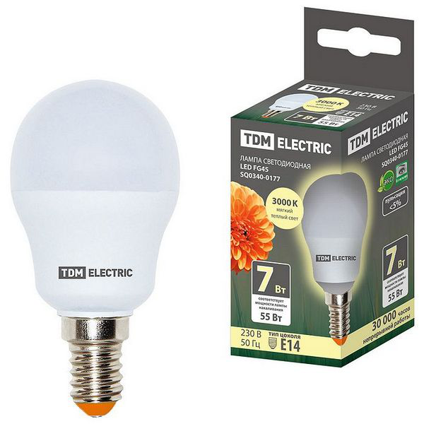 В нашем магазине «Главэлектрика» в Казани, вы можете приобрести товар: «Лампа светодиодная FG45-7 Вт-230 В-3000 К–E14 TDM» с доставкой по г. Казань.