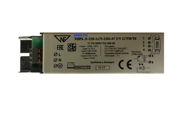 ЭПРА Л-220-1х75-2201-07 (1x75W) - это электронный пусковой и регулирующий аппарат, специально разработанный для использования с бактерицидными лампами мощностью 75 Вт. Этот продукт обеспечивает стабильное питание лампы, что способствует эффективной работе ультрафиолетовых лучей, используемых для уничтожения бактерий и вирусов.Электронный пусковой и регулирующий аппарат ЭПРА Л-220-1х75-2201-07 имеет высокую надежность и долгий срок службы. Он обеспечивает стабильную яркость и длительную работу бактерицидной лампы без мерцания или пульсаций света.