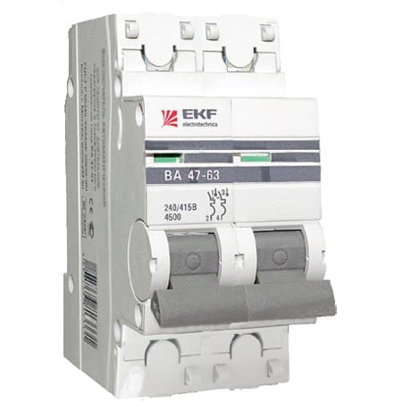 ОБНОВЛЕНИЕ ЛИНЕЙКИ PROXIMA Артикул аналог: M634250D Автоматические выключатели ВА 47-63 4,5 кА EKF PROxima являются механическими коммутационными аппаратами и соответствуют ГОСТ Р50345-2010. Особенностью данной серии выключателей является усовершенствованная конструкция. В выключателях имеются пластиковые крышки, закрывающие доступ к винтовому зажиму и служащие для опломбирования выключателей, что исключает несанкционированный доступ к проводникам. Корпус выключателей усилен дополнительными заклепками для устранения эффекта расхождения корпуса. Выключатели оборудованы удобной ручкой управления, обеспечивающей надежное оперирование изделиями. На лицевой панели выключателей имеется цветовой индикатор состояния. Конструкция установочного зажима обеспечивает свободную установку выключателя на DIN-рейку.