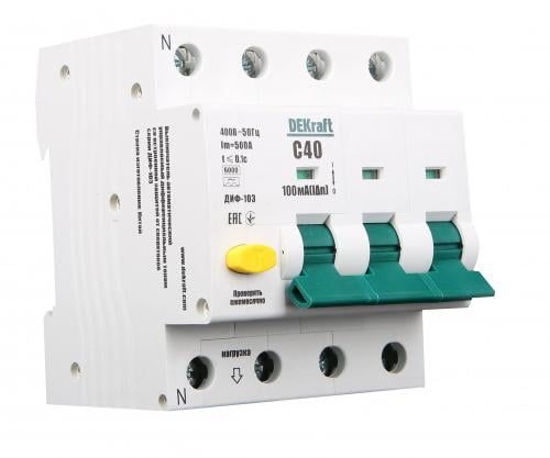 Дифавтомат DEKraft ДИФ-103 3P+N 10А ( C ) 6 кА, 30 мА ( AC ), 16212DEK - идеальное решение для обеспечения защиты электрических цепей в различных сферах применения, включая домашние и промышленные электросети.