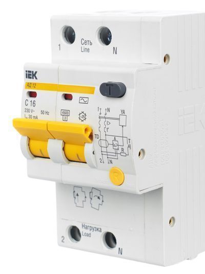 Быстродействующие защитные выключатели обеспечивают: в исполнении с уставками срабатывания 10 и 30 мА: - защиту людей от поражения электрическим током при прямом непреднамеренном прикосновении к токоведущим частям электрооборудования; в исполнении с уставками срабатывания 100 и 300 мА: – защиту от пожара из-за возгорания изоляции токоведущих частей; – защиту от перегрузки и короткого замыкания; – защиту от недопустимого повышения напряжения сети (АД12М). В изделиях предусмотрена индикация срабатывания от дифференциального тока, а для АД12М также светодиодная индикация включенного состояния. АД12М сохраняет работоспособность при снижении напряжения электрической сети до 110 В. В качестве коммутационных аппаратов в изделиях использованы выключатели автоматические ВА47-29 новой серии.