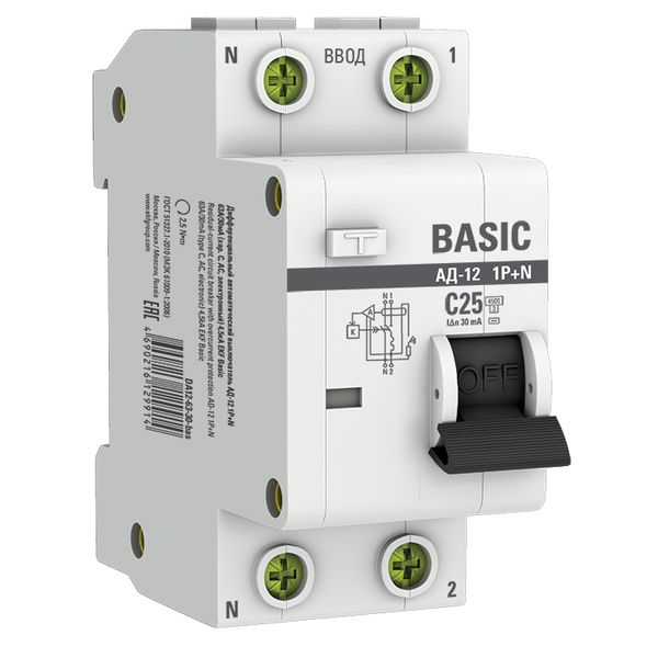 В нашем магазине «Главэлектрика» в Казани, вы можете приобрести товар: «Автоматический выключатель дифференциального тока 1P+N 25А 30мА тип АС х-ка C эл. 4,5кА АД-12 Basic» с доставкой по г. Казань.