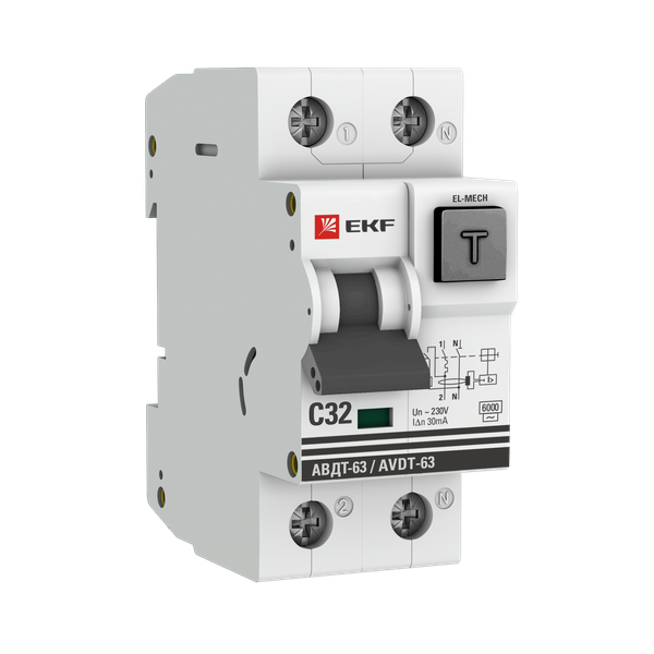 ОБНОВЛЕНИЕ ЛИНЕЙКИ PROXIMA Артикул аналог: D63N26M32C30 Автоматический выключатель дифференциального тока АВДТ-63 EKF PROxima представляет аппарат, сочетающий функции автоматического выключателя с электромеханическим или электронным УЗО. При обнаружении автоматическим выключателем в защищаемом участке сети тока утечки (повреждения) на землю или сверхтока (тока перегрузки или короткого замыкания) происходит срабатывание устройства, приводящее к отключению защищаемой сети. Возможна коммутация алюминиевым и медным проводником. Автоматический выключатель дифференциального тока малогабаритный АВДТ-63М EKF PROxima представляет аппарат, сочетающий функции автоматического выключателя с электронным УЗО типа АС в компактном корпусе шириной один модуль. При обнаружении автоматическим выключателем на защищаемом участке сети тока утечки (повреждения) на землю или сверхтока (тока перегрузки или короткого замыкания) происходит срабатывание устройства, приводящее к отключению защищаемой сети. Особое отличие дифференциальных автоматических выключателей EKF с электронным УЗО – в наличии блока защиты от перенапряжения. Возможна коммутация алюминиевым и медным проводом.