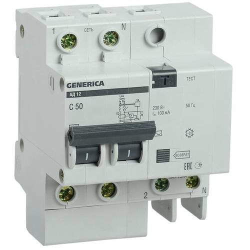 В нашем магазине «Главэлектрика» в Казани, вы можете приобрести товар: «Диф. автомат 2П 50А 100мА GENERICА АД12» с доставкой по г. Казань.