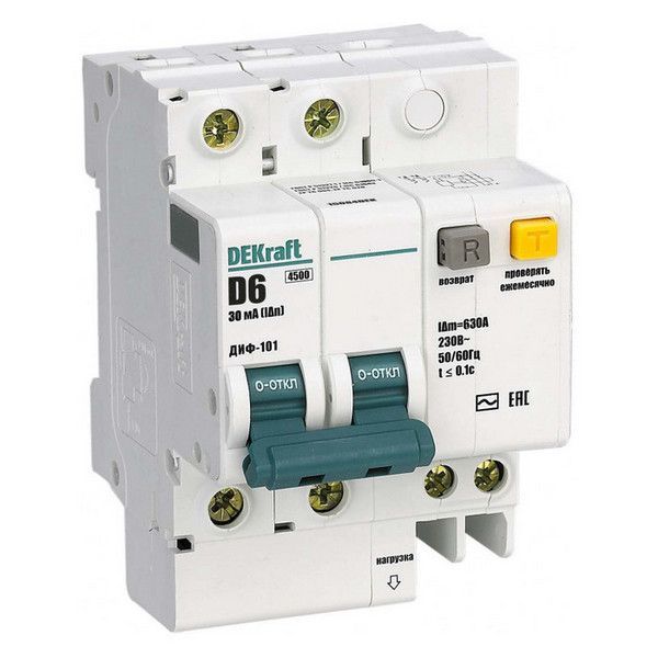 Модель DEKraft ДИФ-101 2P 6А (D) 4.5 кА, 30 мА (AC), 15084DEK соответствует стандартам безопасности и качества. Она легко устанавливается и подключается к электрической сети.
